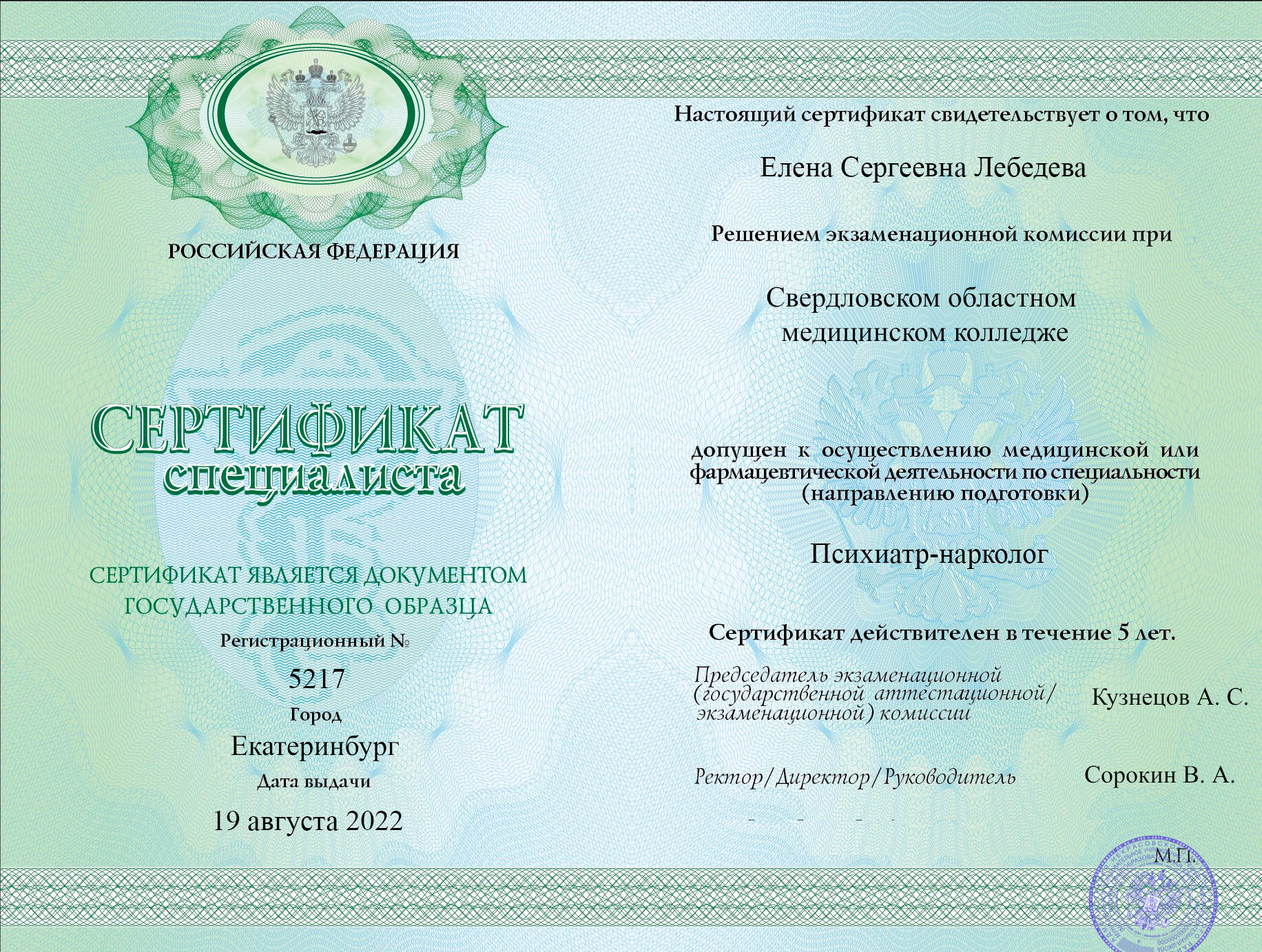 Елена Сергеевна Лебедева врач нарколог клиники доктора Стукаловой в Ванино